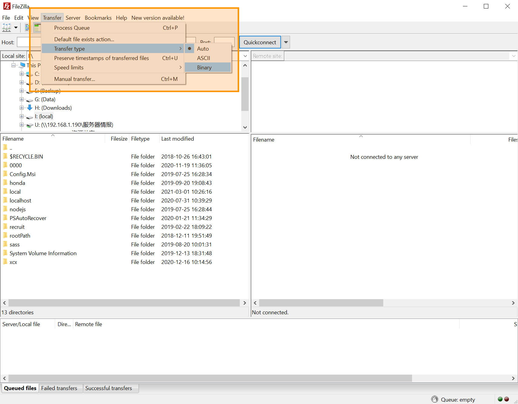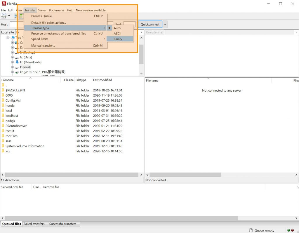 将FTP软件设置成以二进制传输。英文为:Binary。