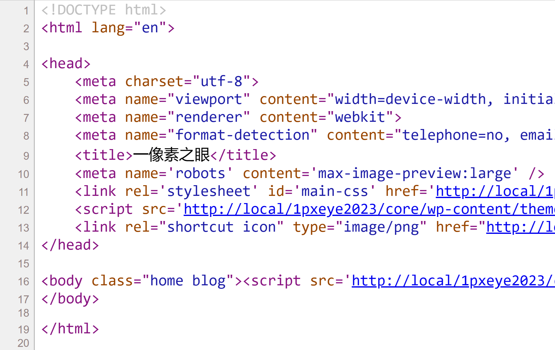 开发wordpress的人都知道wp_head()输出的内容,源码中是顶部对齐的。强迫症的人总想缩进对齐。如下: