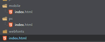 首先看文件夹结构,一个总的index,一个mobile下的index,一个pc下的index。