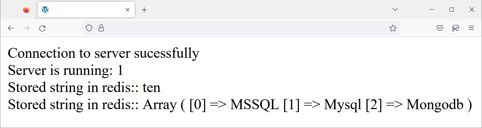 echo "Stored string in redis:: " .$redis->get("my-name");