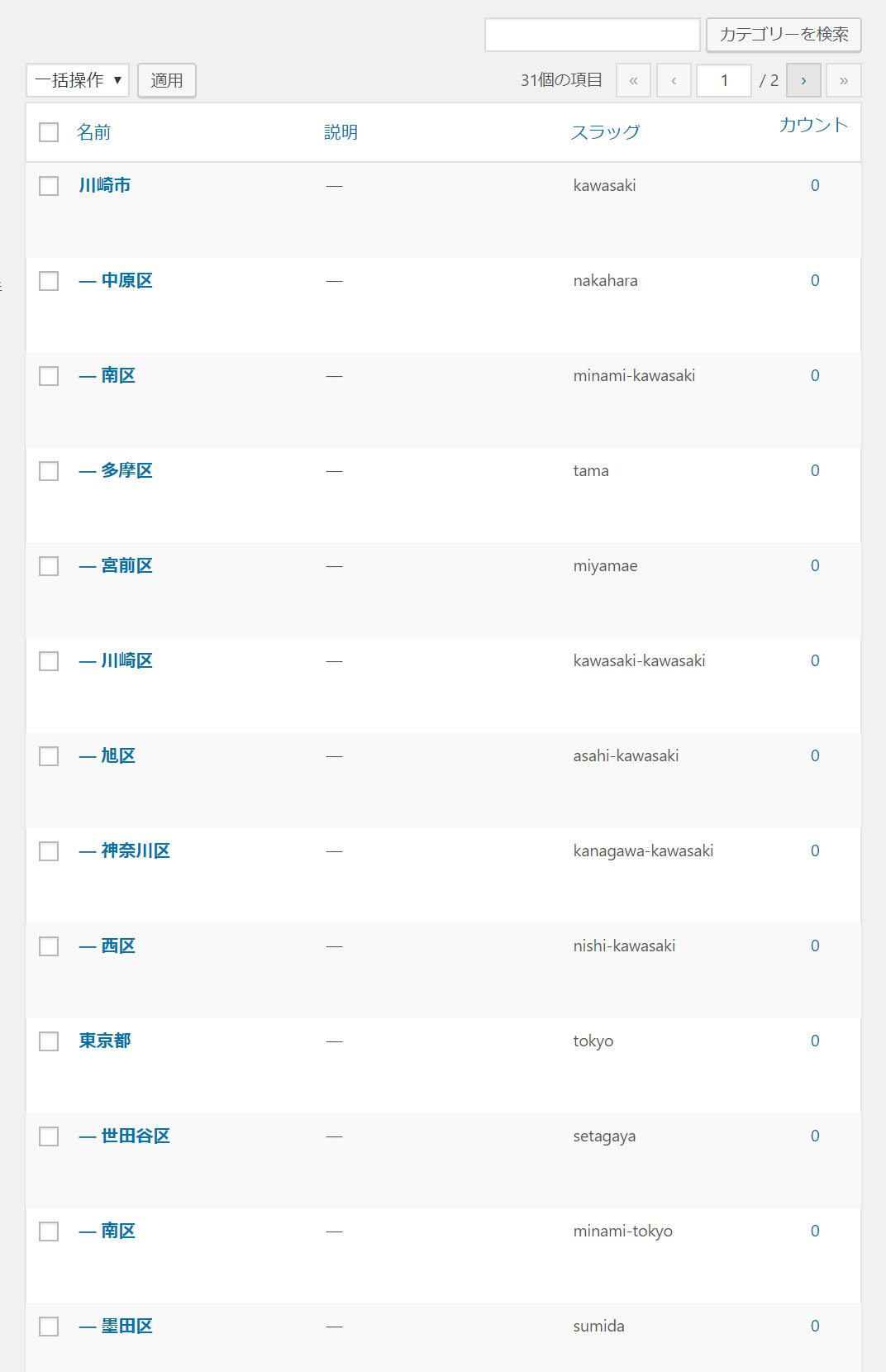 那么,在后台的分类结构是下面这样子的,有个一级分类,下面是若干二级分类: