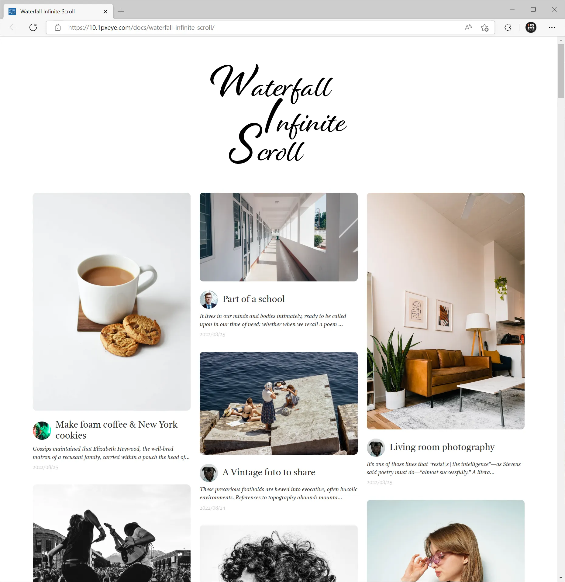 主题Demo:https://10.complexmission.com/docs/waterfall-infinite-scroll/